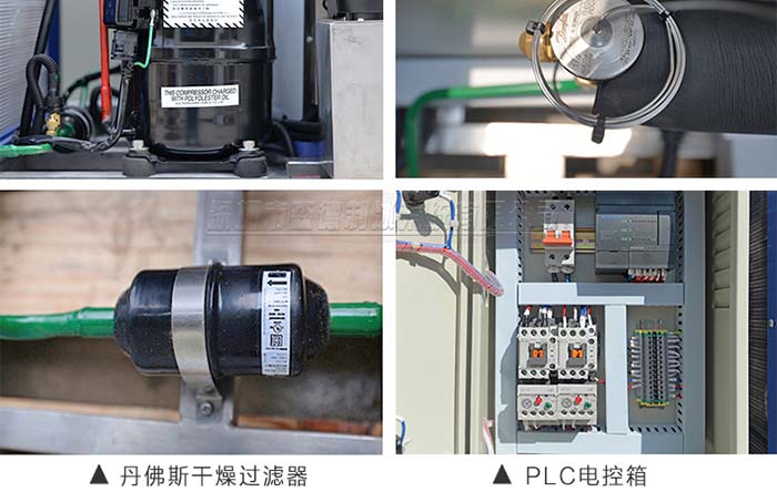 4.采用一線品牌制冷配件:德國比澤爾、丹麥丹佛斯、美國谷輪、臺灣漢鐘壓縮機、意大利萊富康等知名壓縮機,丹佛斯電磁閥、膨脹閥、干燥過濾器、美國愛默生膨脹閥等制冷配件,片冰機質量可靠,故障率低,制冰效率高。