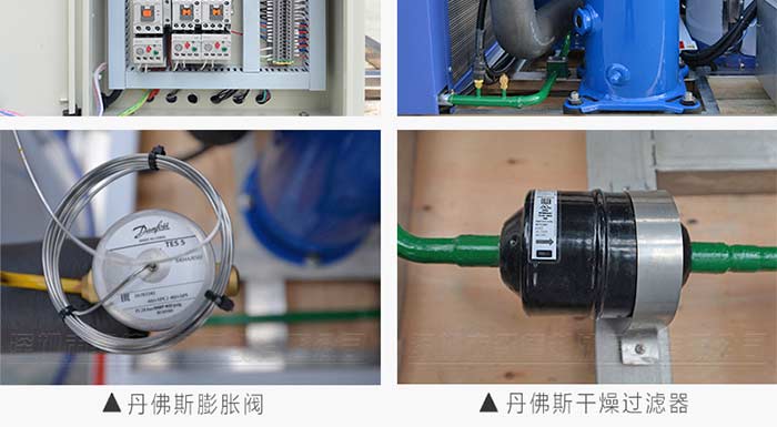 4.采用一線品牌制冷配件:德國比澤爾、丹麥丹佛斯、美國谷輪、臺灣漢鐘壓縮機、意大利萊富康等知名壓縮機,丹佛斯電磁閥、膨脹閥、干燥過濾器、美國愛默生膨脹閥等制冷配件,片冰機質量可靠,故障率低,制冰效率高。